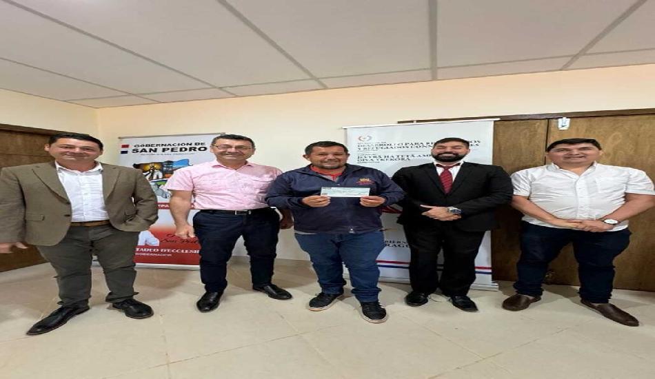 Desde el Gobierno Nacional, a través de la Secretaría de Repatriados de Paraguay, el Gobernador Freddy Tadeo D'Ecclesiis acompañado José Pérez, Director Gral de Gestión, en representación del Ministro y otras autoridades departamentales, realizaron la entrega de aportes económicos complementarios por más de 400 millones de guaraníes, a 26 repatriados para fortalecer sus proyectos, en el marco del Programa de Apoyo a Repatriados Emprendedores, el acto se llevó a cabo en la Oficina Administrativa de la Gobernación de San Pedro en San Estanislao.